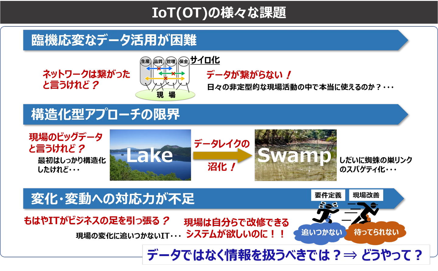 例えば、FOA(Flow Oriented Approach)というコンセプトを背景に、工場のデータを一元化し利活用する事で、生産性を向上させるといった内容になっています。
