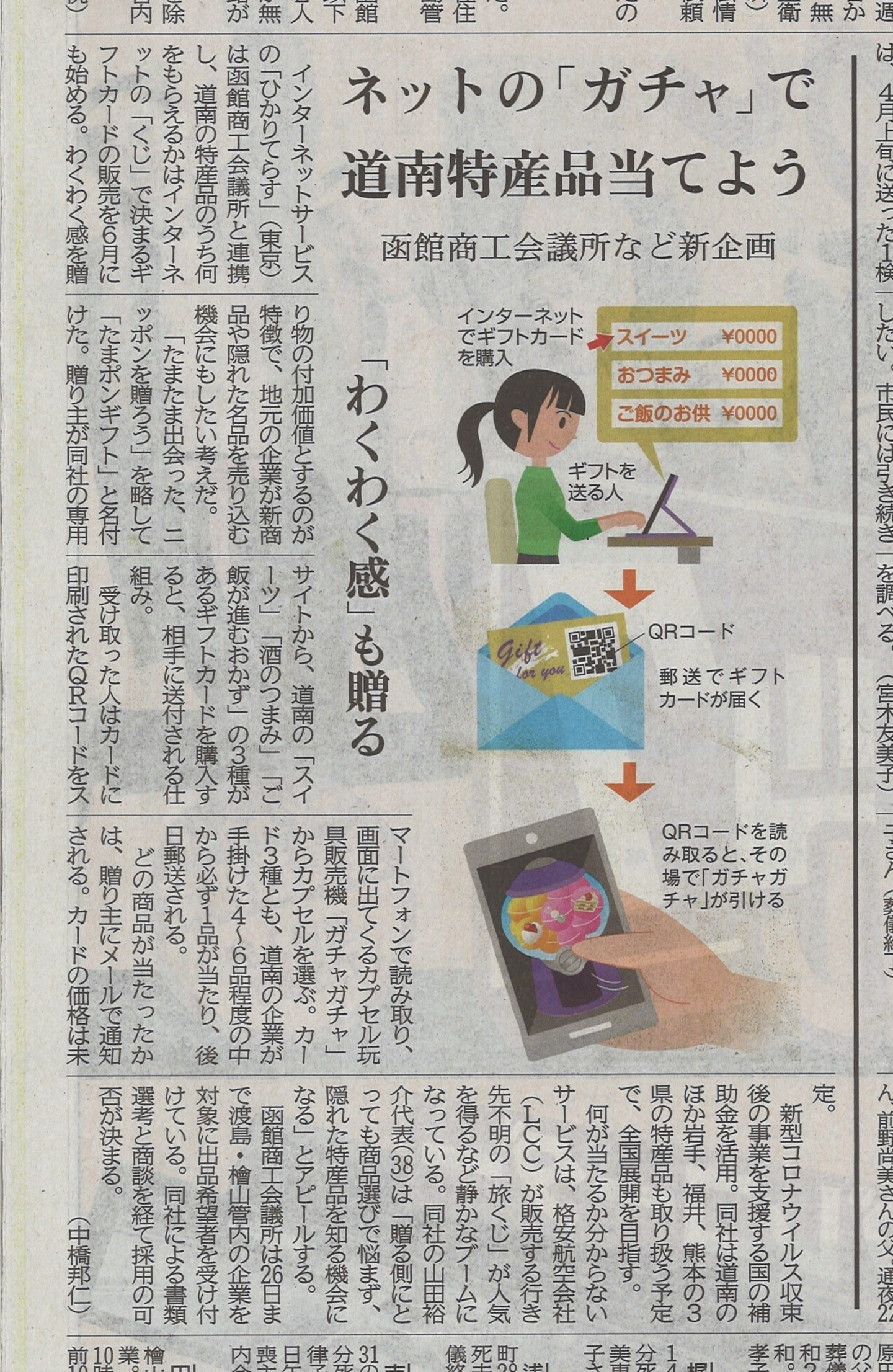 2022年4月22日付の北海道新聞朝刊に、tamapongiftの記事が掲載されました。