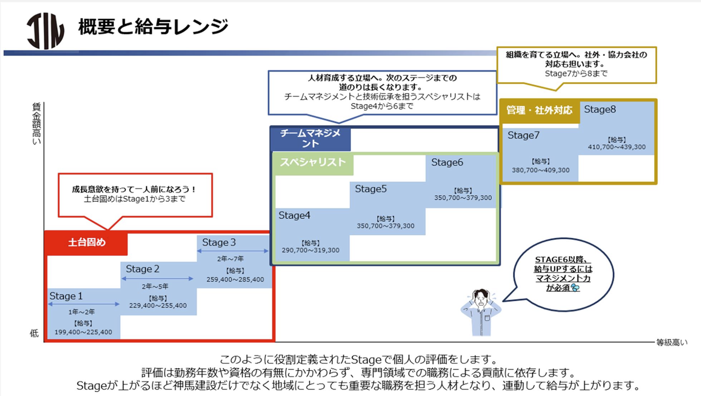 「地方では給与が上がらない」という常識を覆すため、神馬建設では貢献度とスキルに焦点を当てた、透明性の高い評価制度を採用しています。