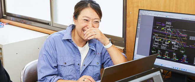 「メンバーが心地良く働くことができるからこそ、余裕をもってお客さまに誠実でいられる」という考えのもと、環境作りを行っています。例えば、工事写真などのデータ管理をクラウド化、担当業務の分散など。残業・負荷減少への取り組みを実施中です。