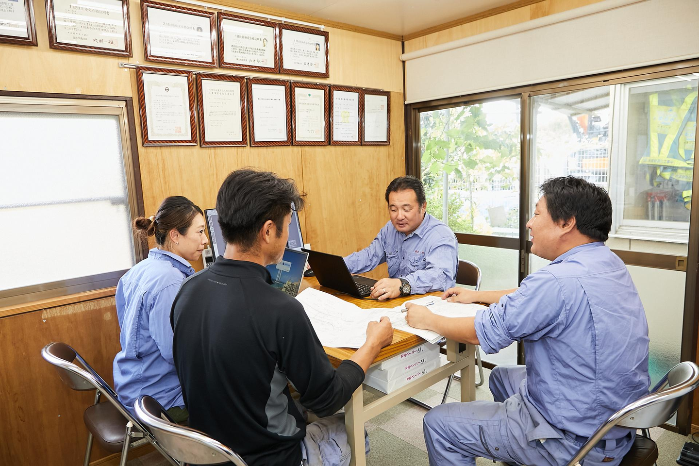 豊澤:以前は私自身も毎日現場に出ていたのですが、徐々に現場を離れるようになりました。今は、道路交通部門、水道局の施設、一般的な仕事の3つにそれぞれに責任者を置いていて、私の仕事を少しずつ分散させています。