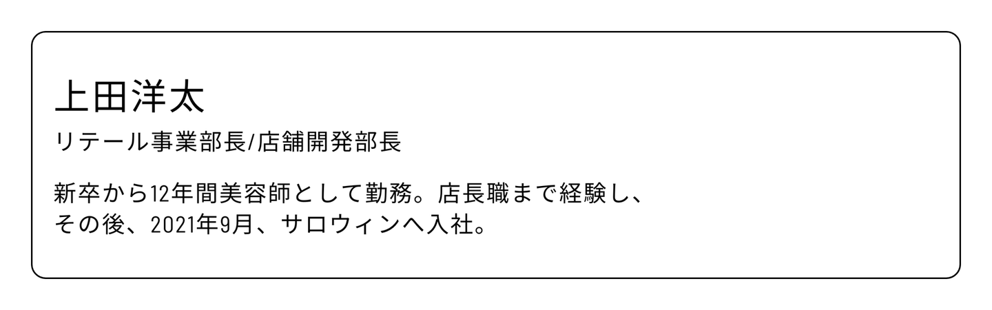私は、「圧倒的な顧客目線」を大切にしながら、サロウィンのシェアサロン事業を通じて、美容師さんの理想的な働き方をサポートすることに情熱を注いでいます。
