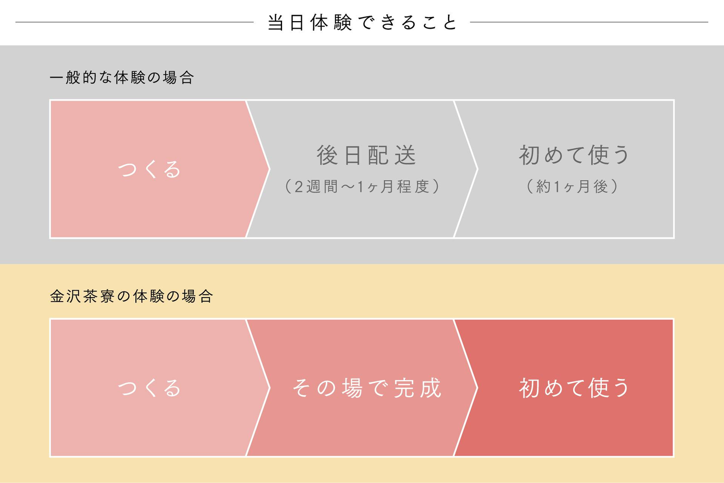 金沢茶寮では当たり前を疑い、作ったその日のうちに持って帰ることができる。さらにその先、その場で初めて使う、という体験までをワンストップで提供しています。