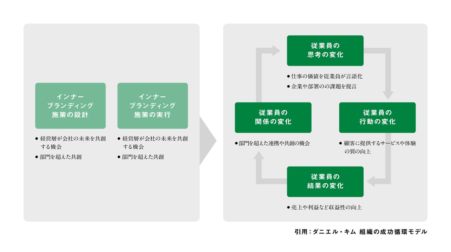 「組織の成功循環モデル(ダニエル・キム)」でも知られているように、こうした組織の良い循環サイクルを生むために、インナーブランディングを起点に、企業のブランディングを構築されることをおすすめします。
