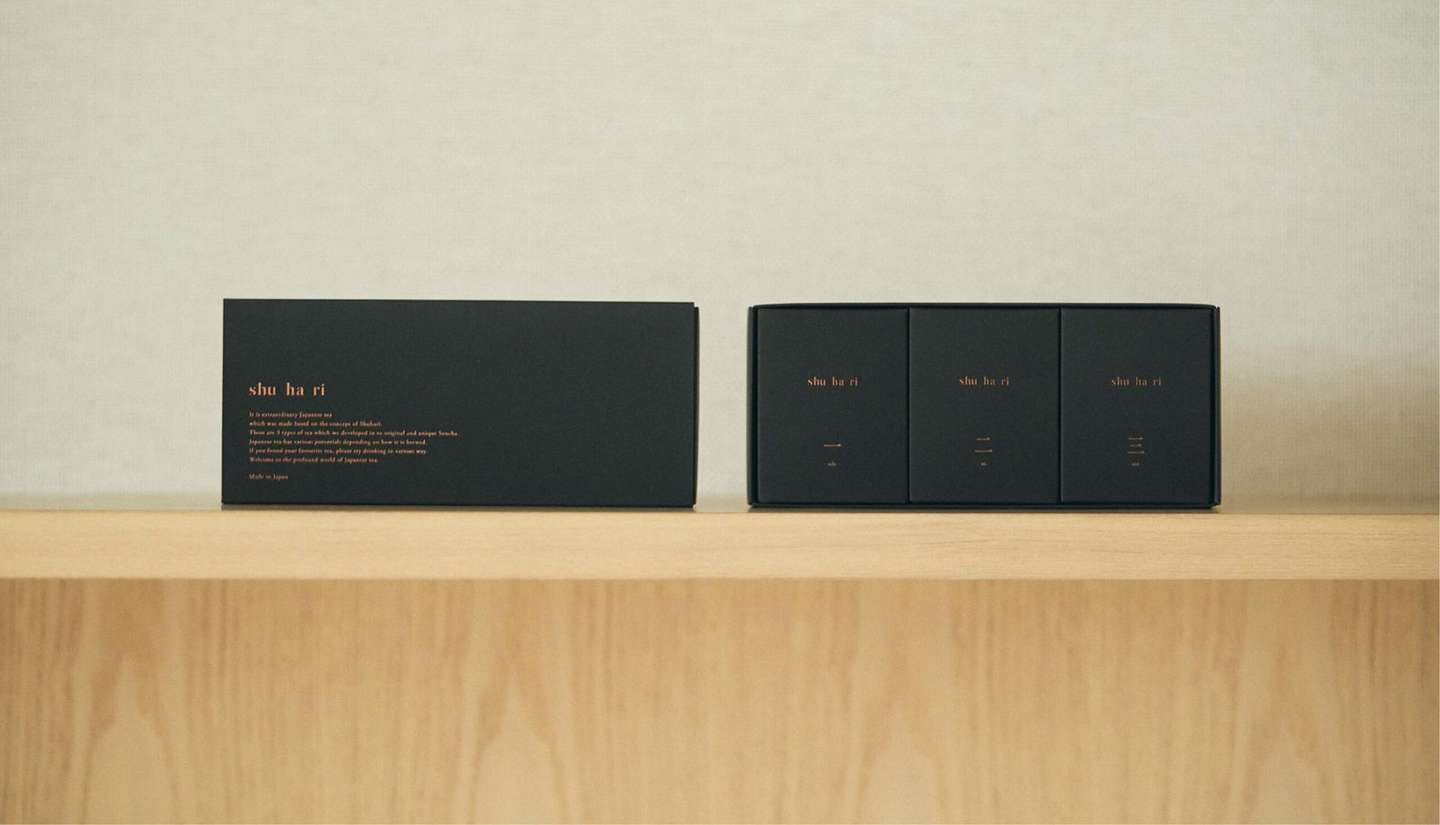“shu ha ri” は、日本の芸事の思想のベースである守破離の考え方で生まれた型破りな日本茶。日本古来の製法である茶葉のブレンド製法を用い、飲んだときに感情を刺激されるような、個性的な味の日本茶を開発。お茶は一、二、三の3種類。あなたの気分で選んで、お楽しみください。
