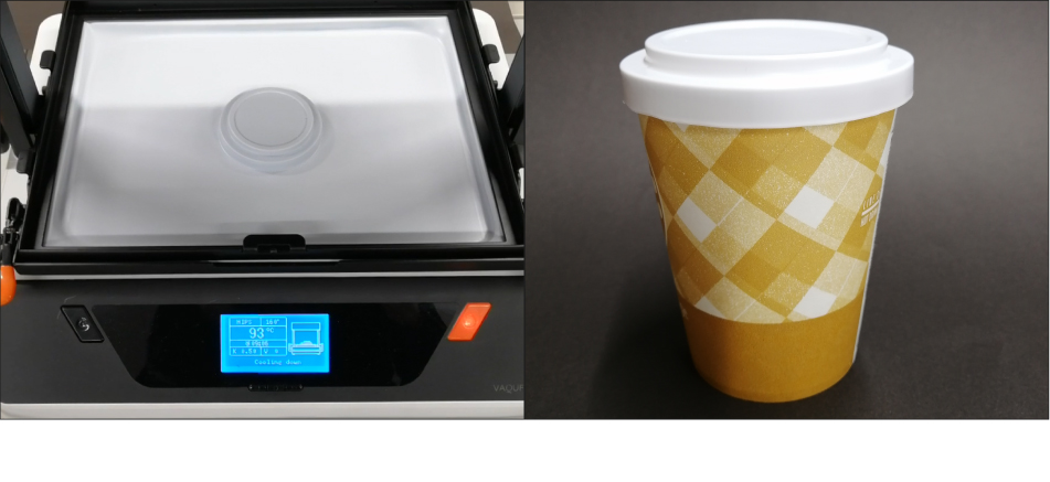 真空成形機にプリントモデルの型をセッティングし、成形を行います。