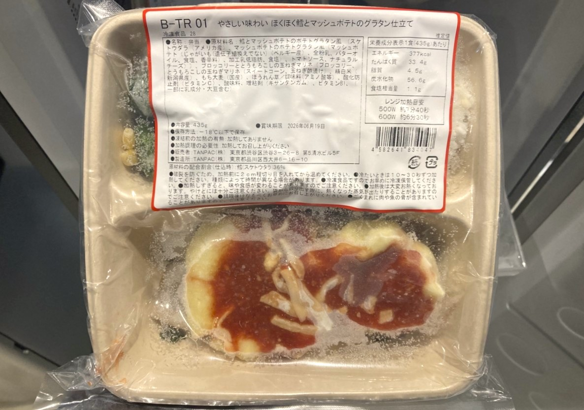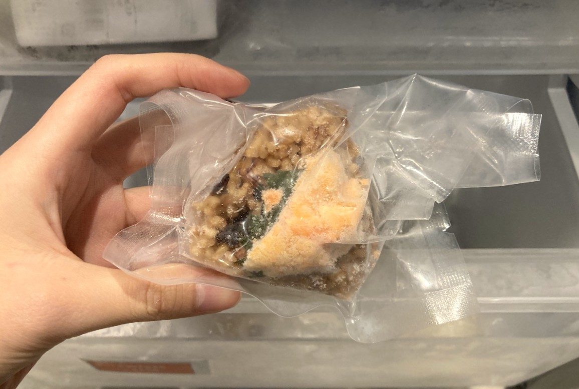 お弁当は真空パックされた状態で入っています。食事のとき解凍・温めに時間がかかるため、会社には新たに電子レンジが1つ追加されました!❤️🔥