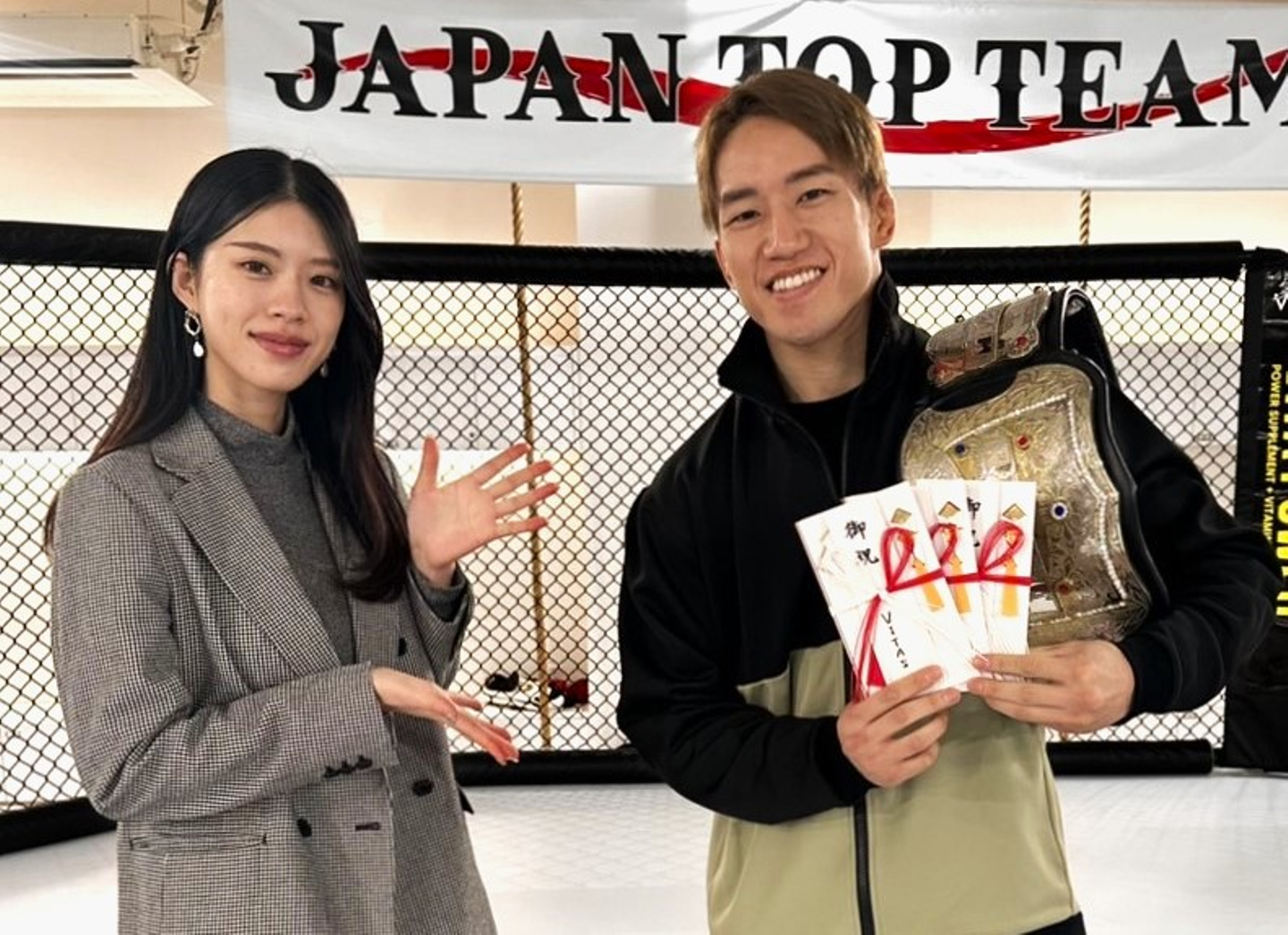 2023年 RIZIN でバンタム級新王者に輝いた朝倉海さんへ、VITAS から勝利者賞を贈呈したとき