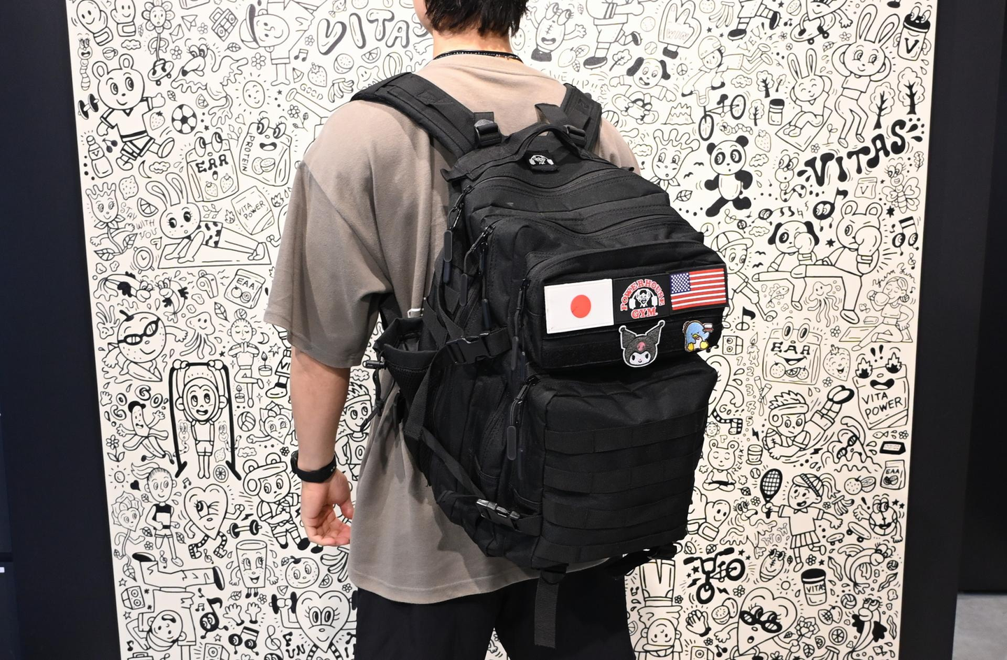 なんだかワッペンがたくさんついているバックパック📛トレーニー用らしく、お弁当を入れる専用スペースがあるそうです!🍱(トレーニーは食事管理目的でよくお弁当を持ち歩くため)
