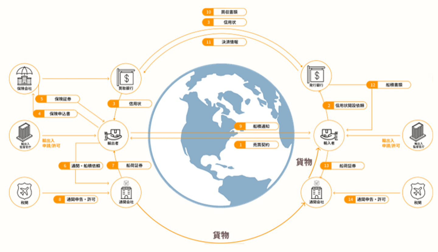 そして、この4つのプロセスのなかには、売り手と買い手だけでなく、商社や金融機関、保険会社、物流会社、通関会社、税関など、多数のプレイヤーが複雑に関わり合っています。