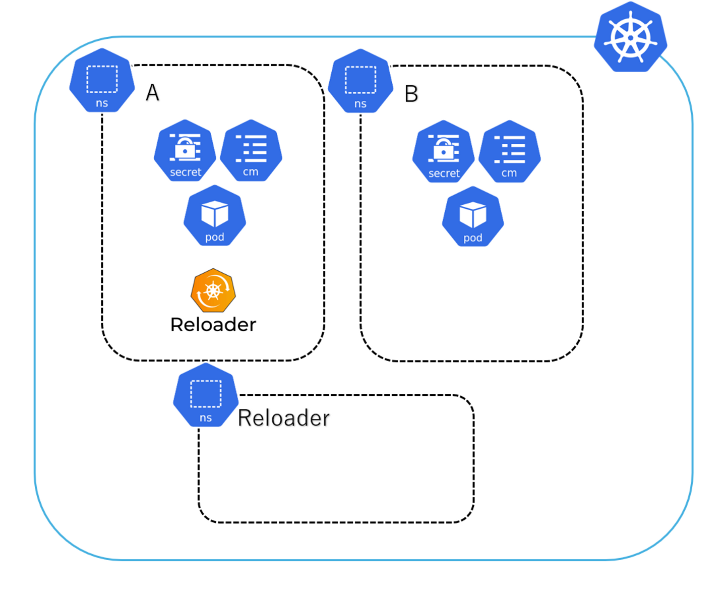 - Reloader専用のネームスペースに配置し、全ネームスペースを監視する
