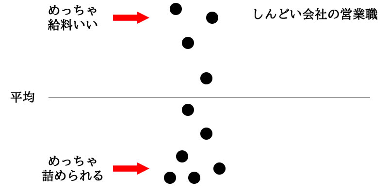 個人のスキルによって成績が大きく上下し、社内でのヒエラルキーがものすごいことになります。