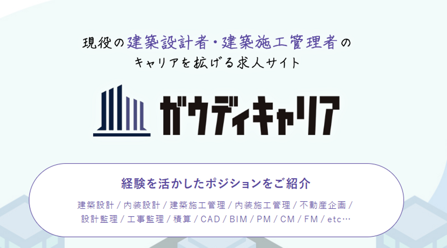 その一方で、多くの方がキャリアについて十分な情報を得られず、不安を抱えながら働いているという現状があります。そんな建築出身者向けのキャリア支援サービスが「ガウディキャリア」です。