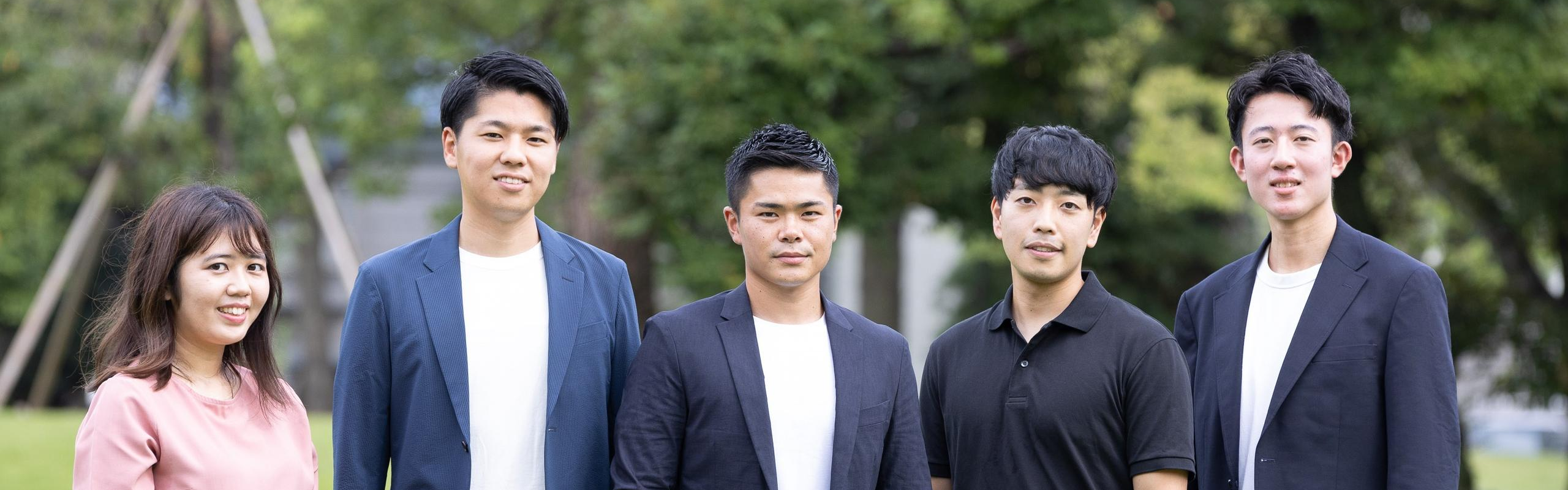 メンバーの平均年齢は、26.5歳。経営層は20代後半を中心に構成されており、学生インターンも含めて若く活気あるチームです。