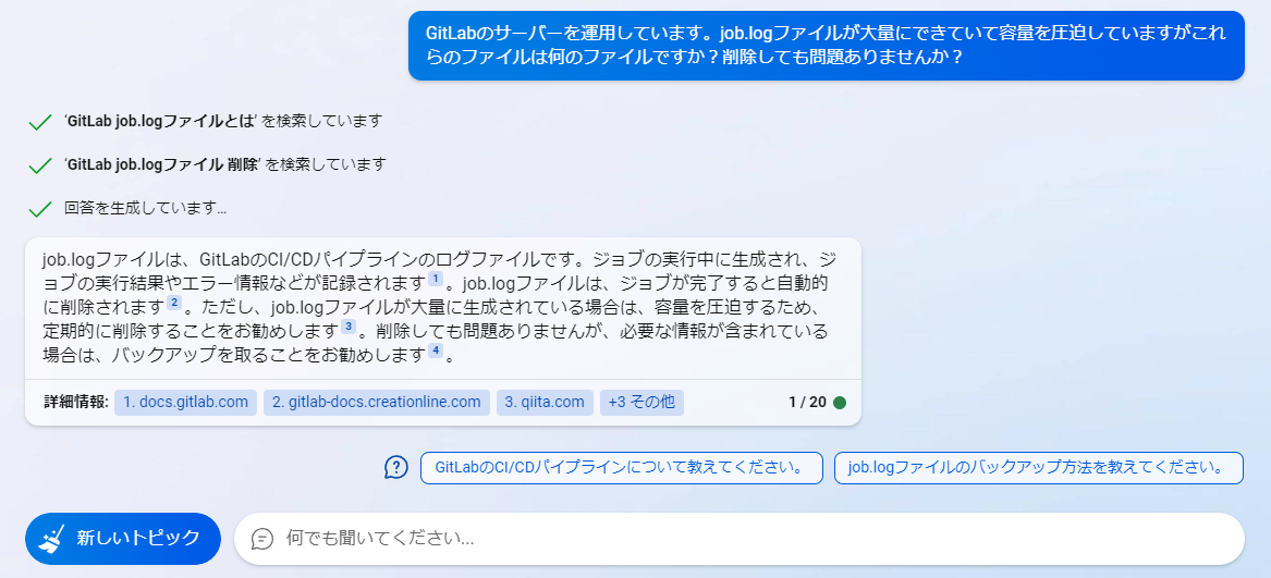 見当がついたところで、昨今話題のBingのAIチャットに聞いてみましょう。調べ物をする速度が圧倒的に速くなって本当便利ですよね。もちろんAIの言っていることはまだまだ誤りも多いので最終確認をしっかりする必要はありますが、ある程度のことを相談した上で公式サイトまで一気にワープできます。