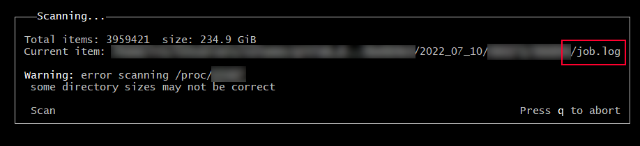 で、実際にサーバーで全体をスキャンして容量を調べていたときにやたらと目についたjob.logというファイル。もしかしてこれが原因…?