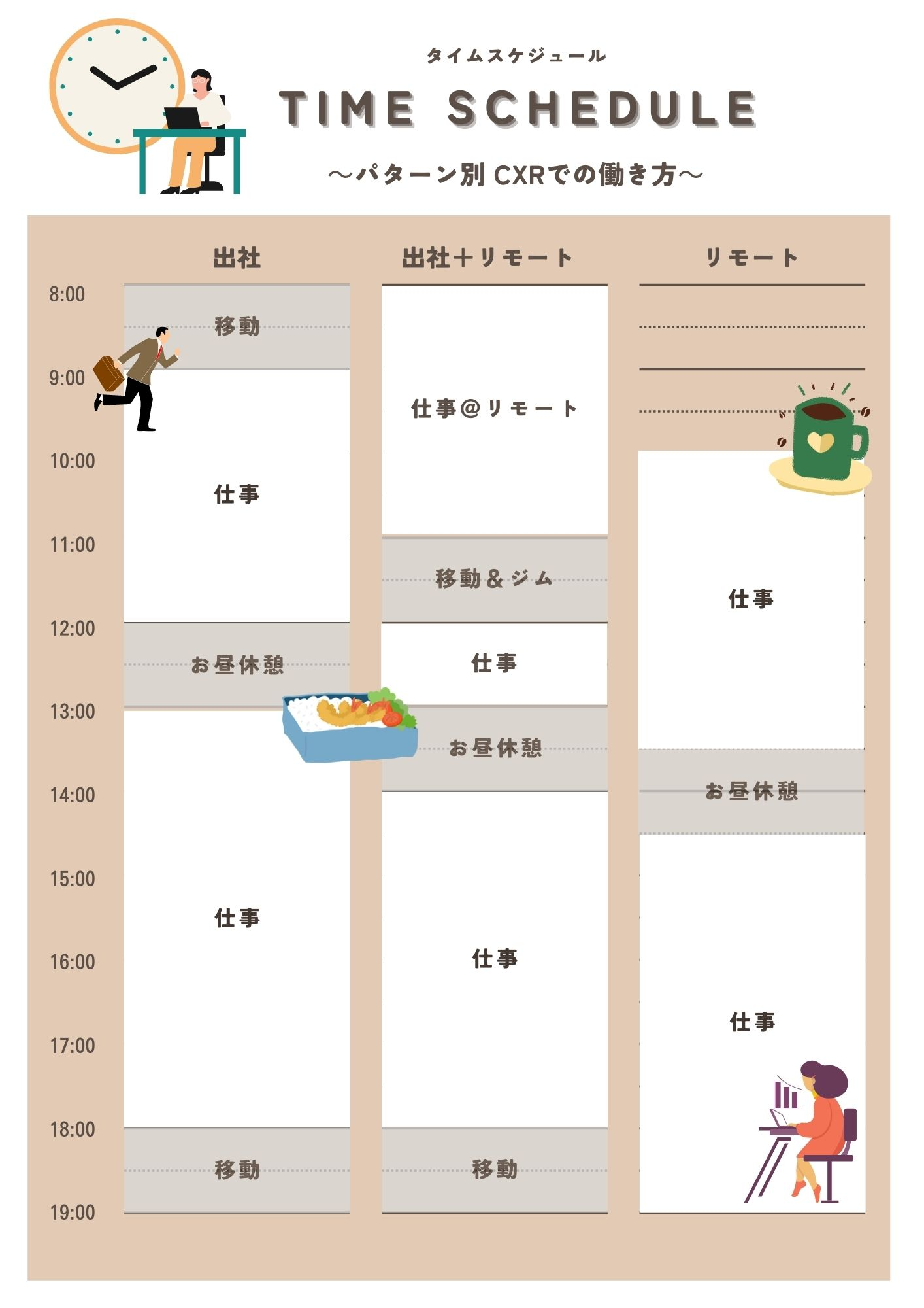 「働きやすさ」の証拠として、パターン別の1日のスケジュールを紹介させてください!