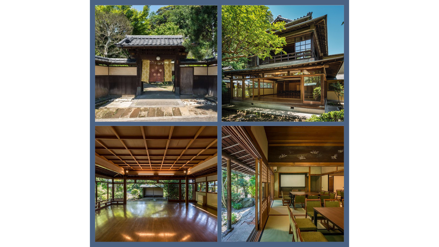 伝統的な和風木造住宅で、能舞台や茶室、連続する畳の間や大きなお庭があり、物語の世界のようでした。