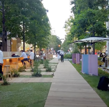 通りの一部は、芝生になっており、仕事ができるスペースも用意されてました。