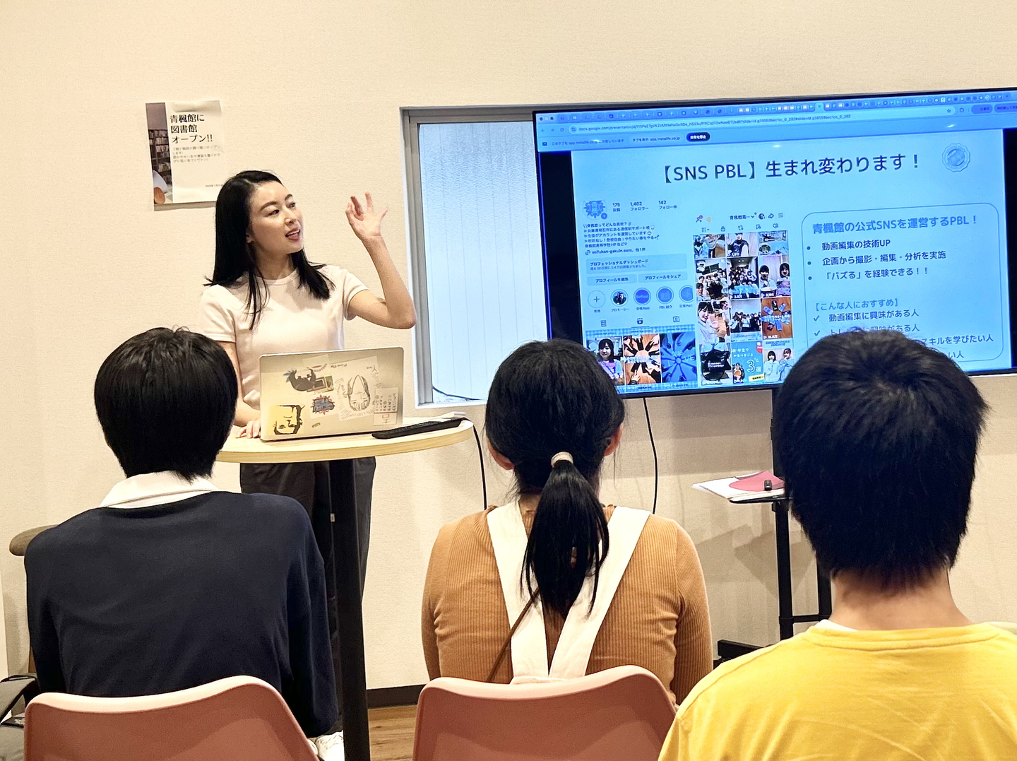 1on1では生徒に寄り添い、PBLではプロジェクトの進行やモチベーション管理を担い、進路相談では未来の選択を一緒に考える。そして広報では、青楓館をもっと多くの人に知っていただく施策を企画する。
