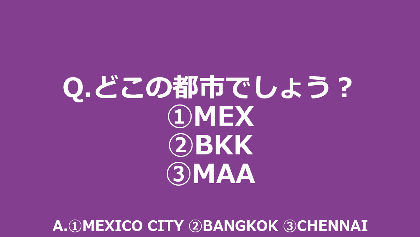 ※インドのチェンナイは、以前マドラス(MADRAS)と呼ばれていたようです。但し、スペインのマドリッドの略称がMADだったため、MAAになったとか…
