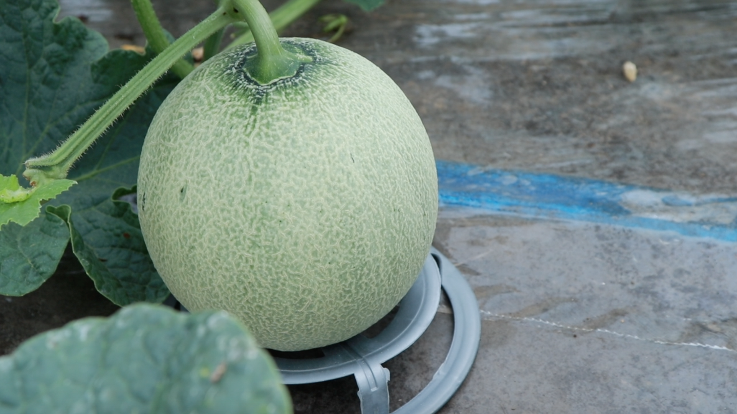 ▲収穫前のうっすらヒビの入ったメロン