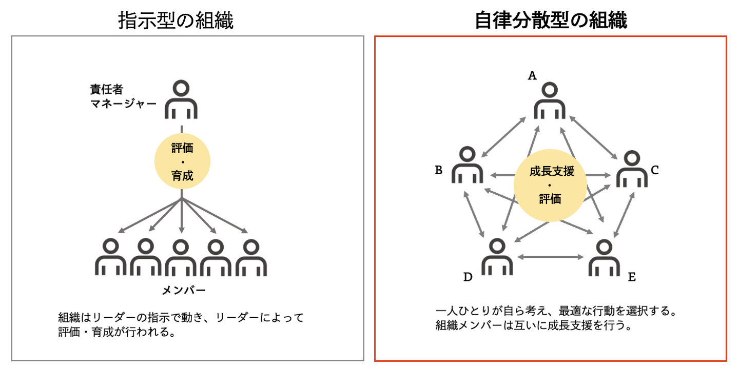そこで、できるだけフラットで自律的な働き方ができる構造で、「個人の成長」と「会社の成長」を最大化するために、「セルフマネジメントの分散型評価制度」を導入しました。