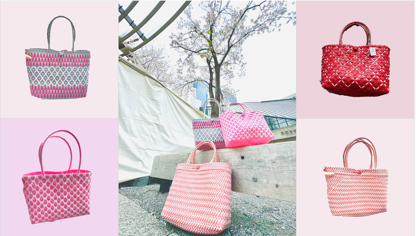Kho Vietnamのブースでも、桜カラーのカゴバッグを取り揃えておりました。