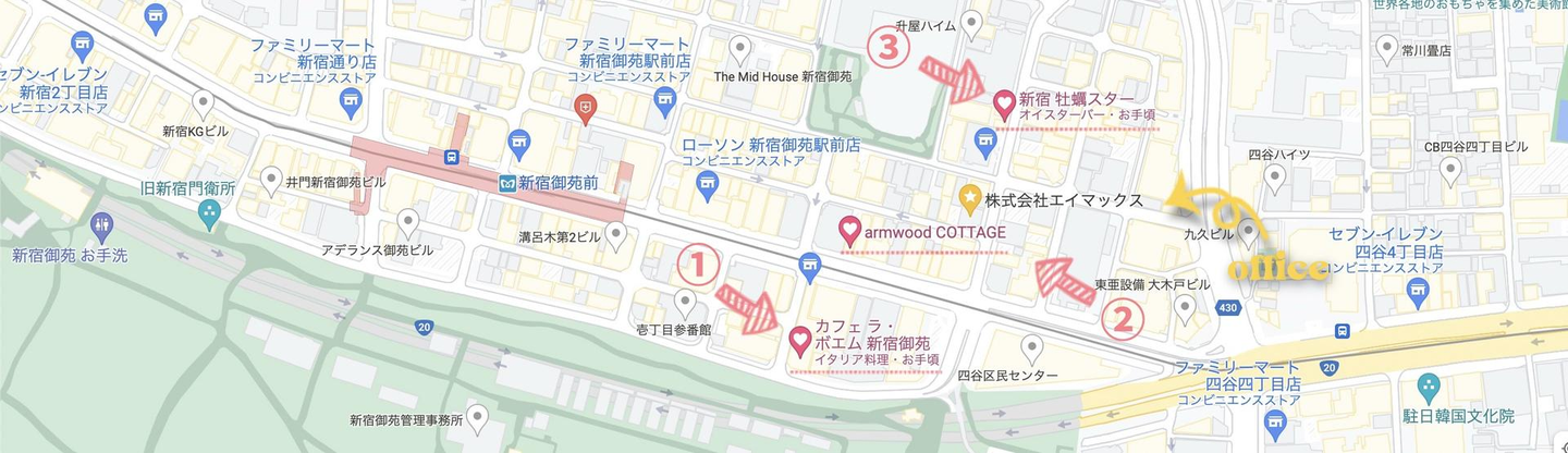 アクセス:丸ノ内線「新宿御苑」駅2番出口から徒歩5分3.場所まとめ