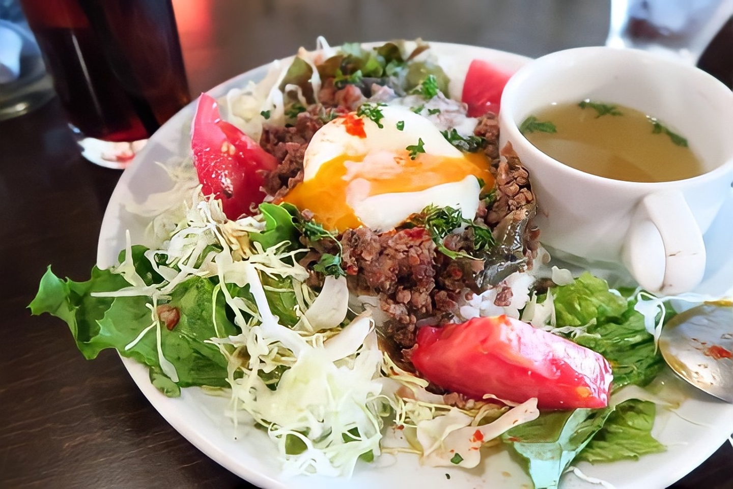 外観も内観もコテージ風で素敵な雰囲気!店内は開放感がありつつもアンティーク調のインテリアが並んでいるため、さながら海外のおうちに来ているかのよう。階段を上がると中二階には和室の半個室ロフトがあったり、ゆったり座れるソファー席や開放感のあるテラス席など様々な席があります。