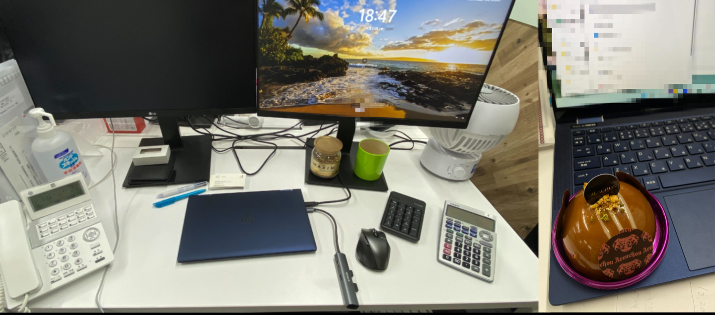 ☝ 添田のデスク 右の写真は社長からの差し入れです!そのため、私たちはしっかり大学生としての活動を中心に4月からの入社時の知識を身に着けるためにインターンをさせていただいています。私たちもまだまだ未熟ですが、周りの学生に比べて圧倒的に知識が身についていると感じています。