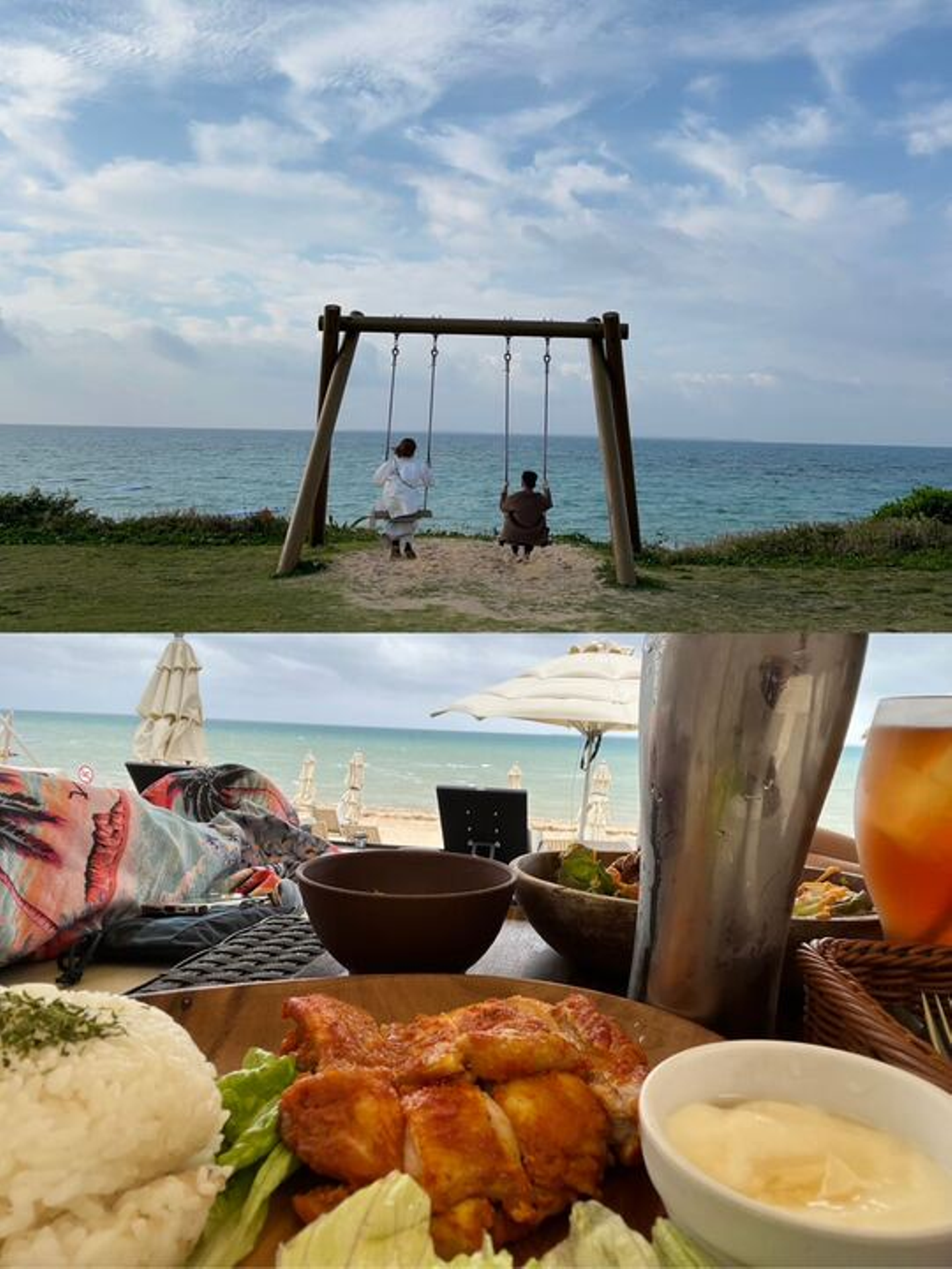 他には沖縄へ行ってきたようで上の写真は映えたいい写真ですね。下の写真も南国ならではビーチでこんなにおいしそうな食事を堪能してきたようです!うらやましい限りですね。