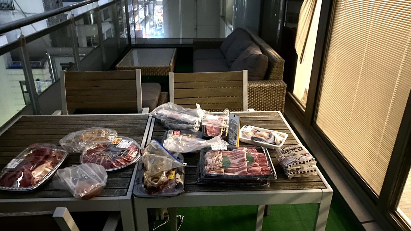 民泊施設のバルコニーで夜のバーベキューも素敵ですね!