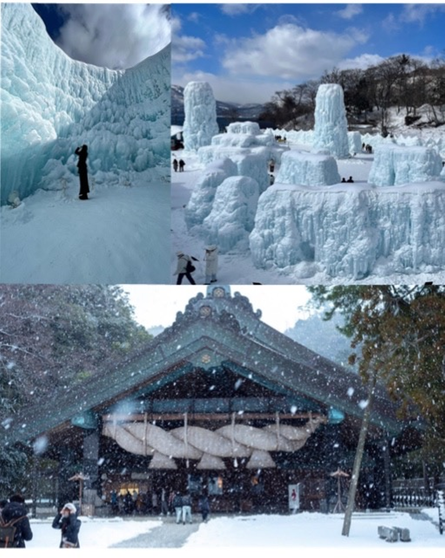 こちらの上2つは北海道の支笏湖氷濤(しこつこひょうとう)まつりの様子です。