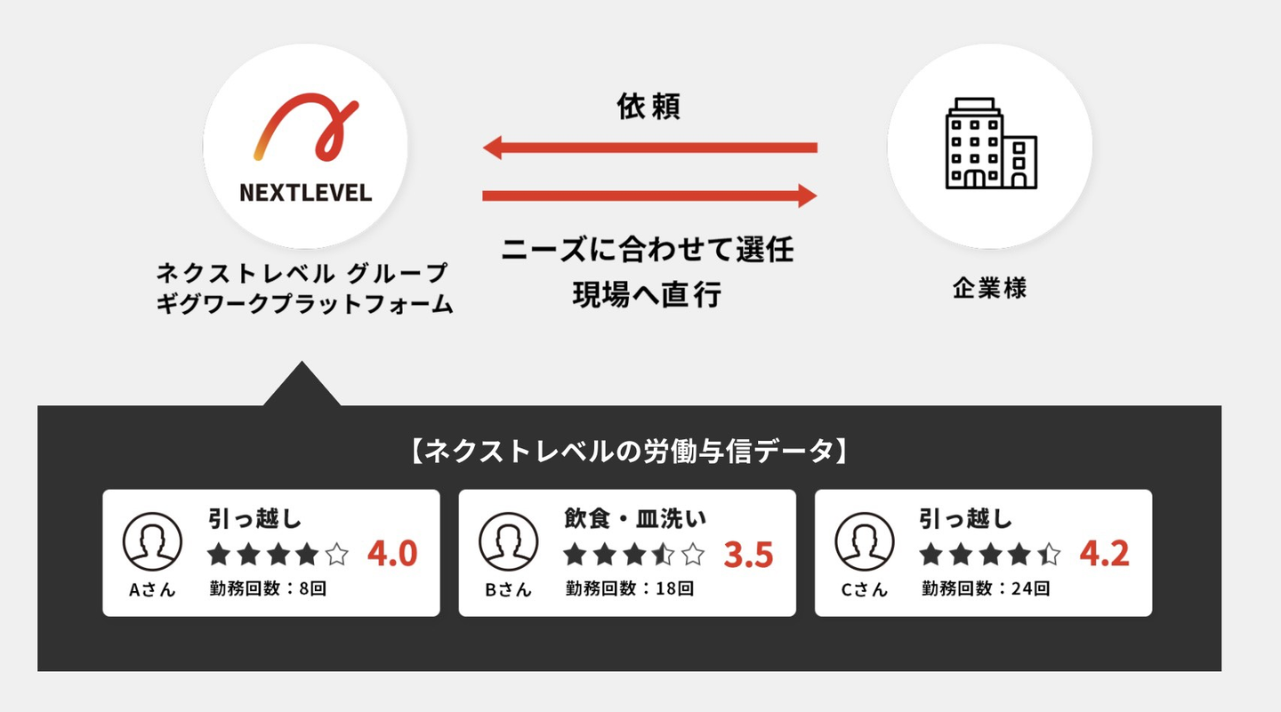・ネクストレベルは業務請負、派遣許可を持って自社で雇用した方を手配します。