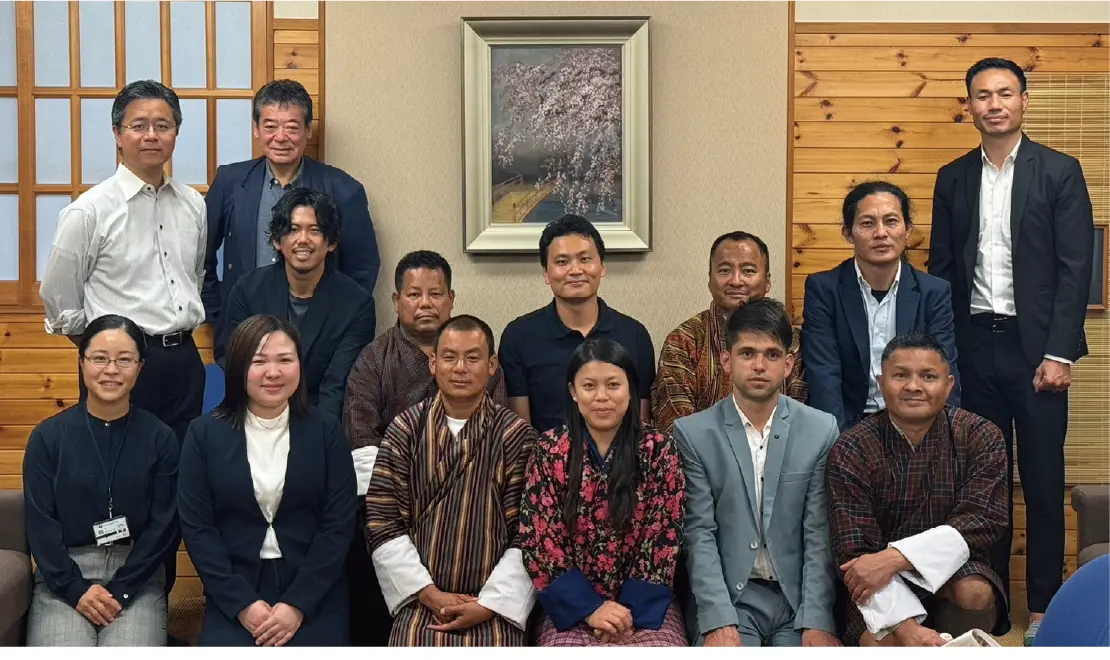 和歌山のブランド鶏「紀州うめどり・うめたまご協議会」の会長を務めています。ブータンからの視察団を受け入れた際の一枚