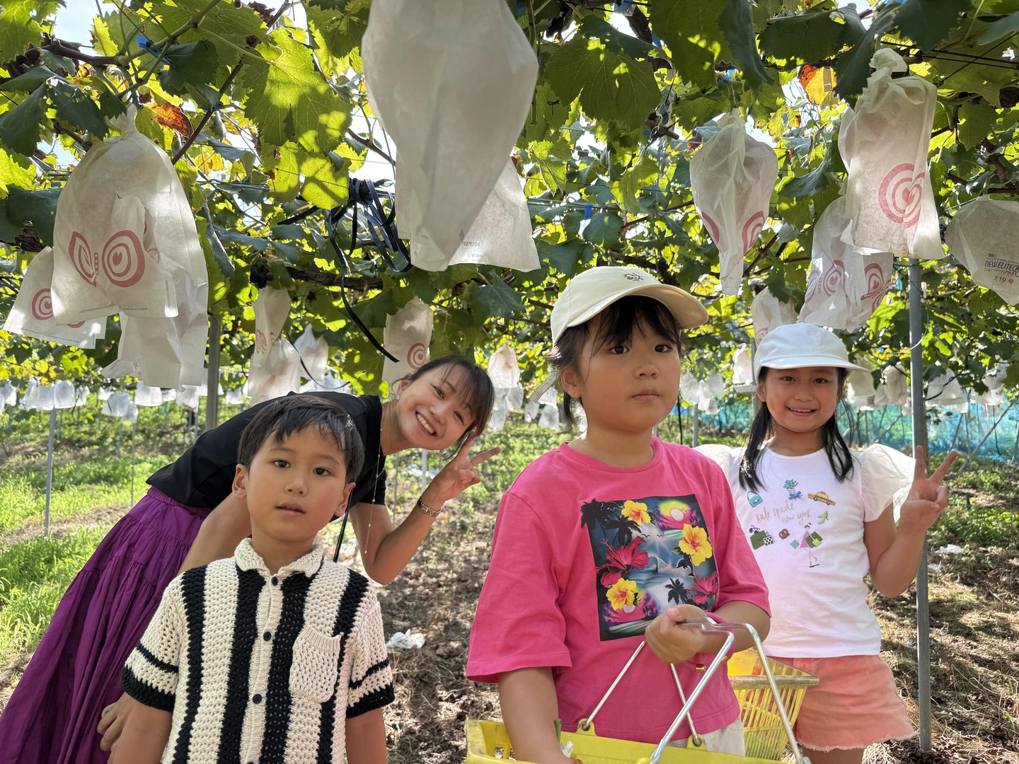 家族でブドウ狩りに。フルーツ王国和歌山は、果物も本当においしいです。