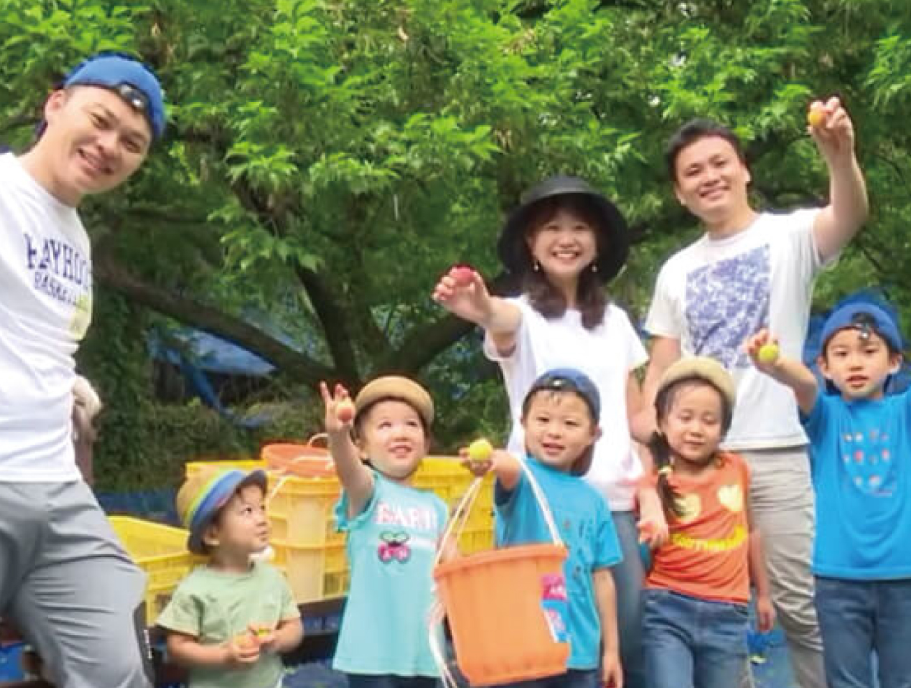 梅拾いの様子。移住後は家族との時間もぐっと増えました(ともに弊社代表を務める弟家族と)