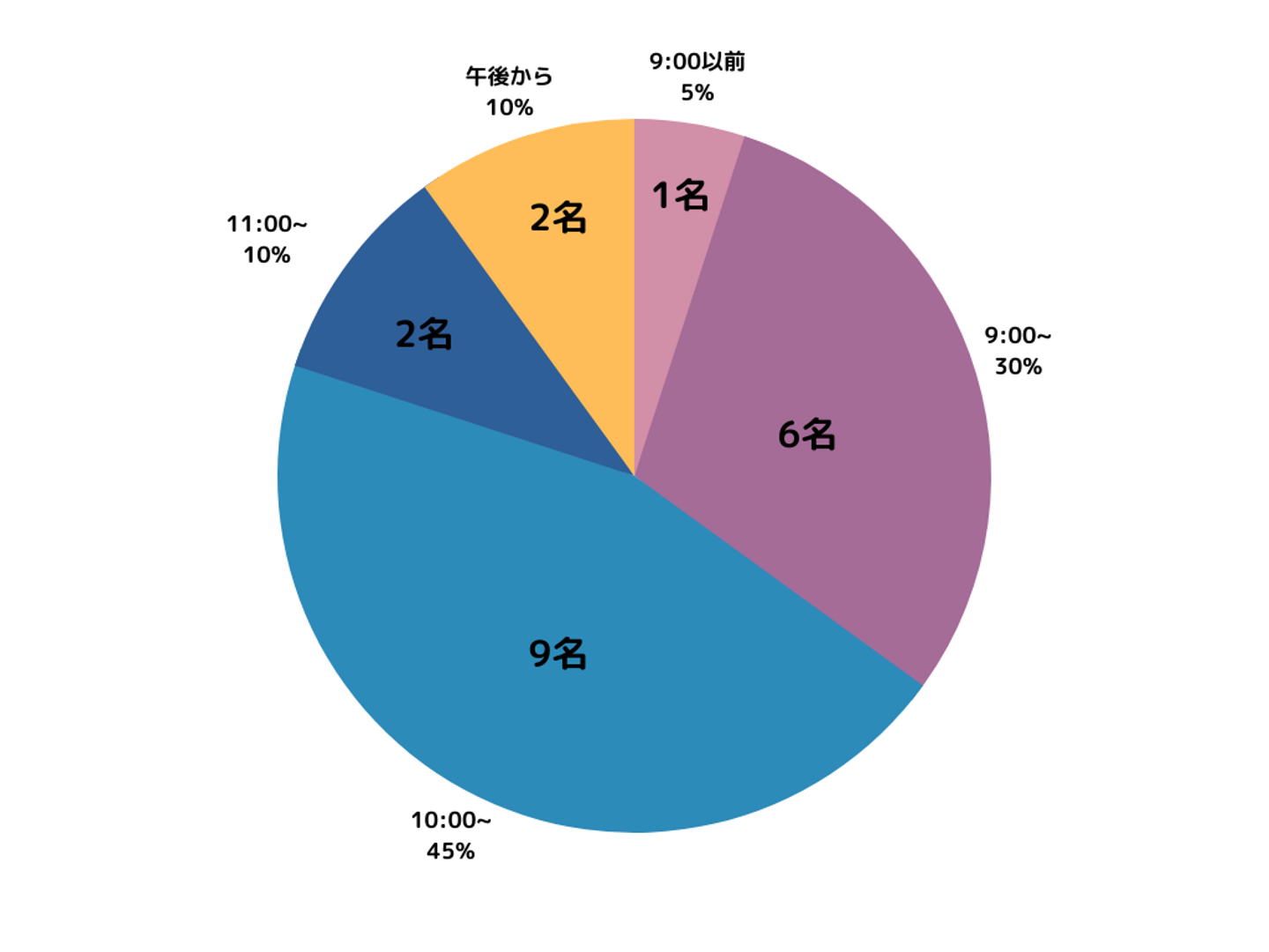 一般的な開始時間である、9:00/10:00スタートのメンバーが75%を占めています。