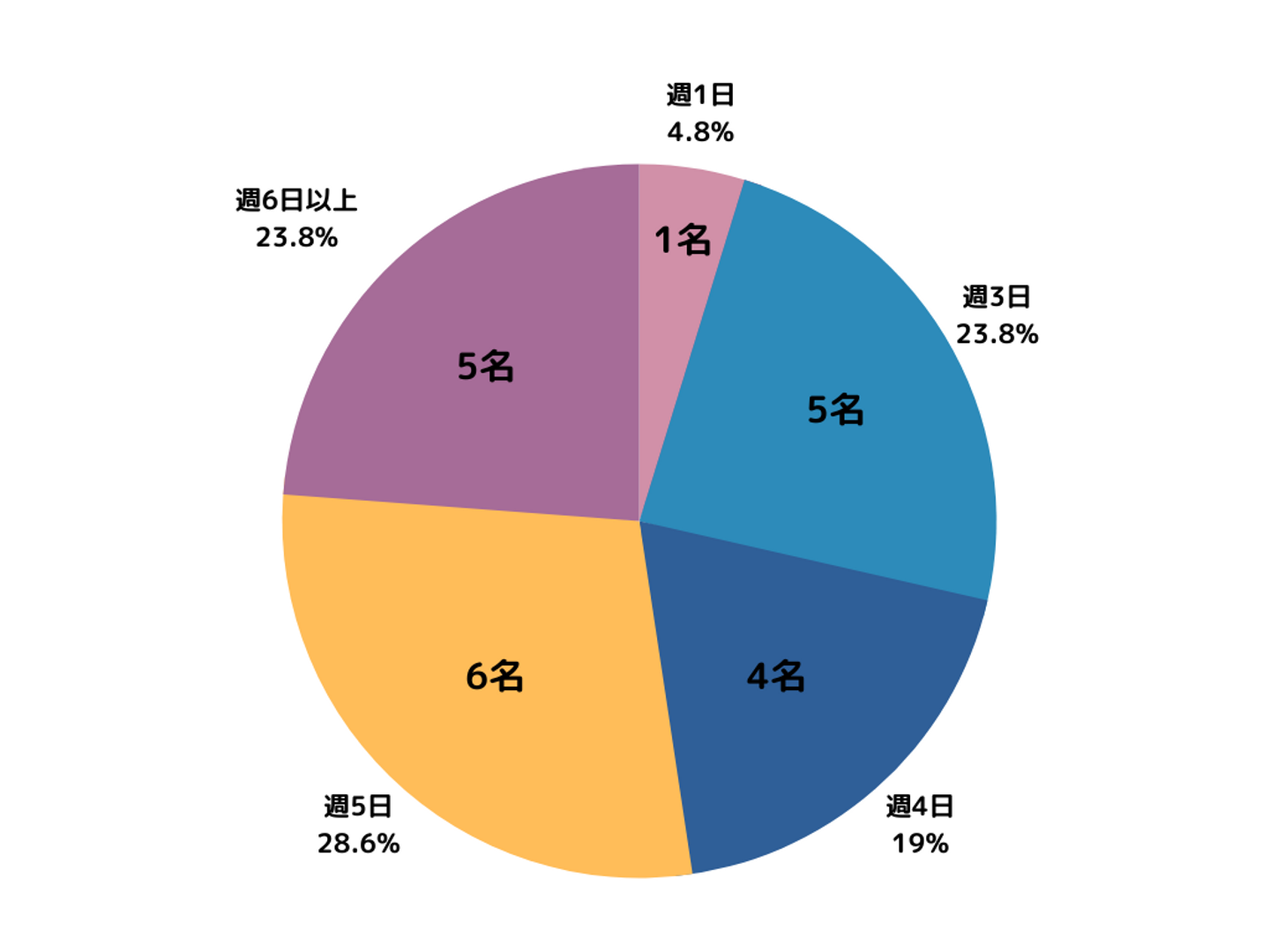 こちらも一般的な働き方と同じく、平日5日間働いている方が最も多い結果となりました!