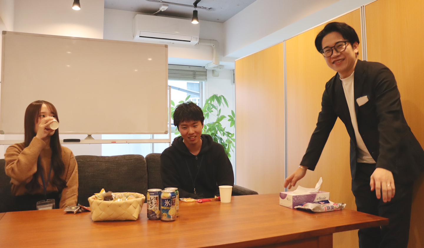オフィスのデスクには常にお菓子が用意されています。お腹が空いて集中できないということがないので、「仕事のパフォーマンスが安定する」と社員からも大好評!