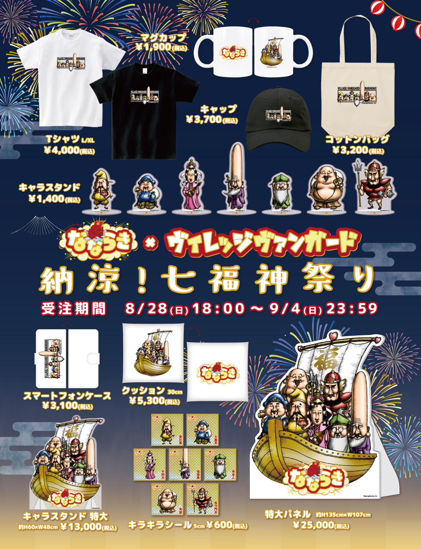 【なならき × ヴィレッジヴァンガード】納涼!七福神祭りを開催!本日8月28日より、なならきとヴィレッジヴァンガードのコラボグッズ受注販売を開始!