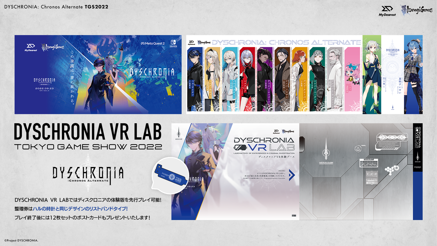 「東京ゲームショウ2022(TGS2022)」では、MyDearest/イザナギゲームズブースにて、9月23日発売予定のVR捜査ゲーム『DYSCHRONIA: Chronos Alternate(『ディスクロニア: CA』)』を出展いたします。