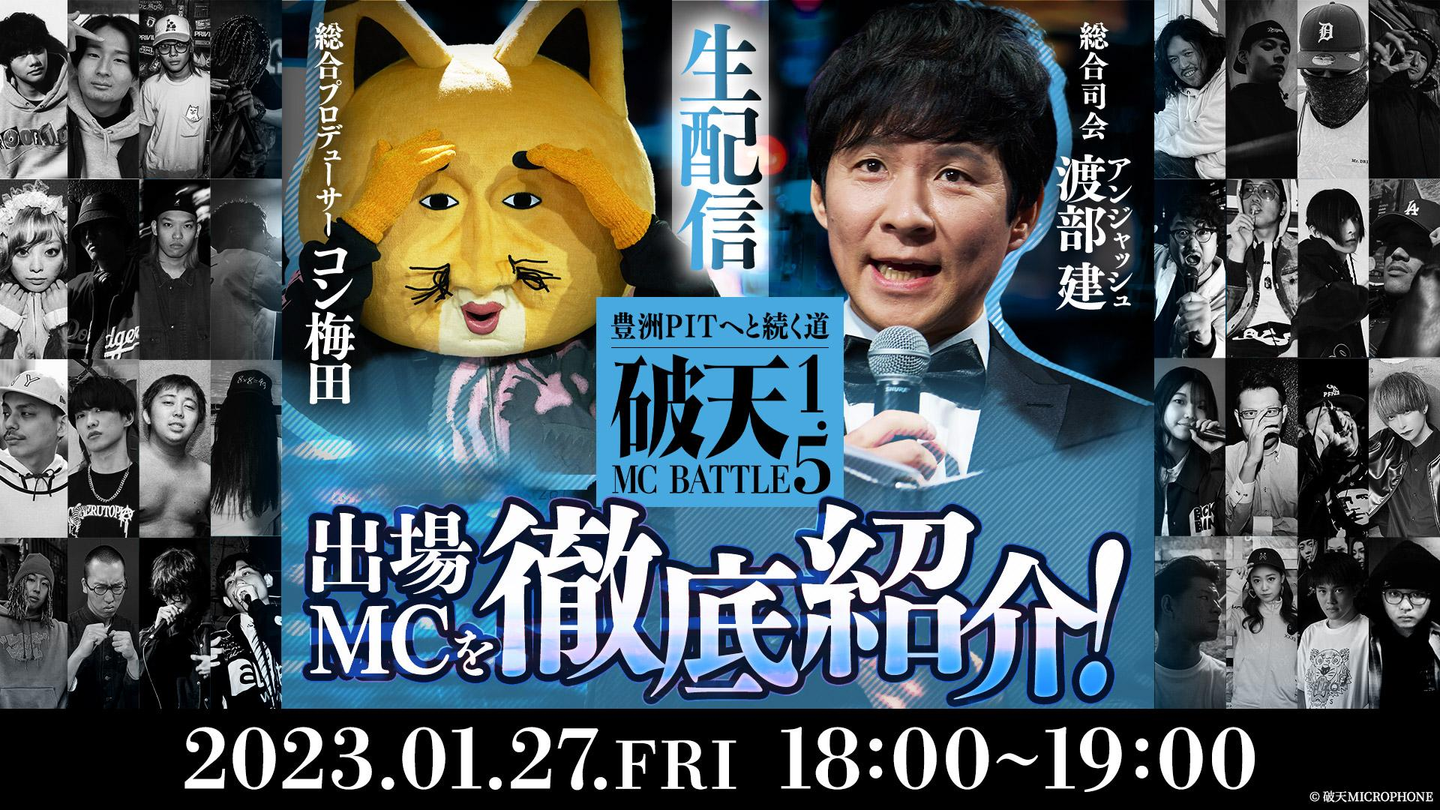 『破天MCBATTLE 1.5』1月27日(金)18時より破天公式YouTubeチャンネルにて、総合司会・アンジャッシュ渡部建&総合プロデューサー・コン梅田による出場MC紹介YouTube生配信決定!