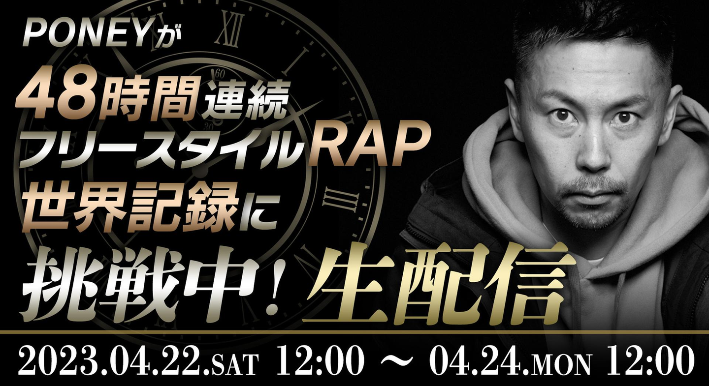 【明⽇48時間⽣配信!】ラッパーPONEYが48時間連続フリースタイルRAPで世界記録に挑戦!破天MICROPHONE公式YouTubeチャンネルにて⽣配信!