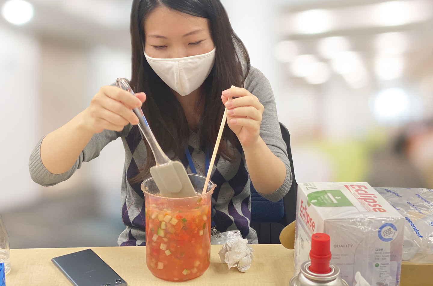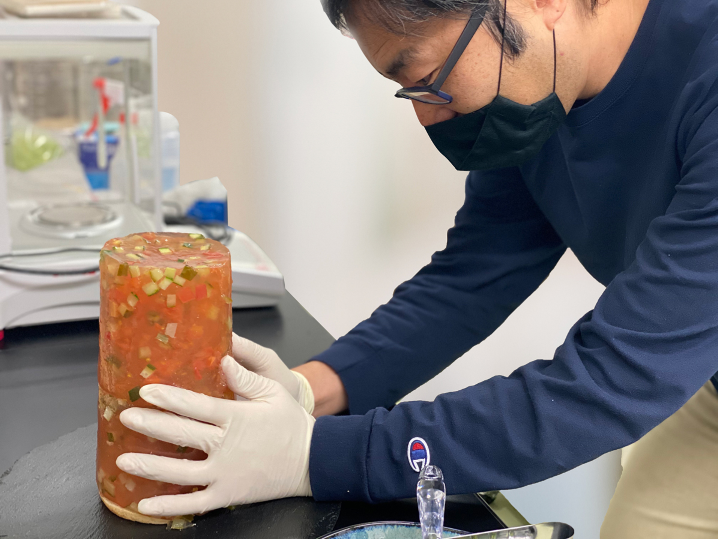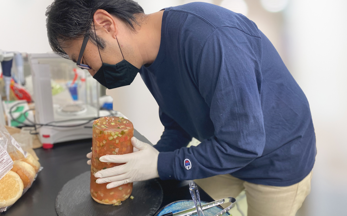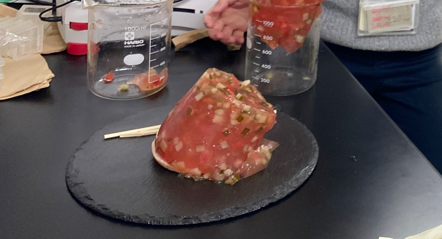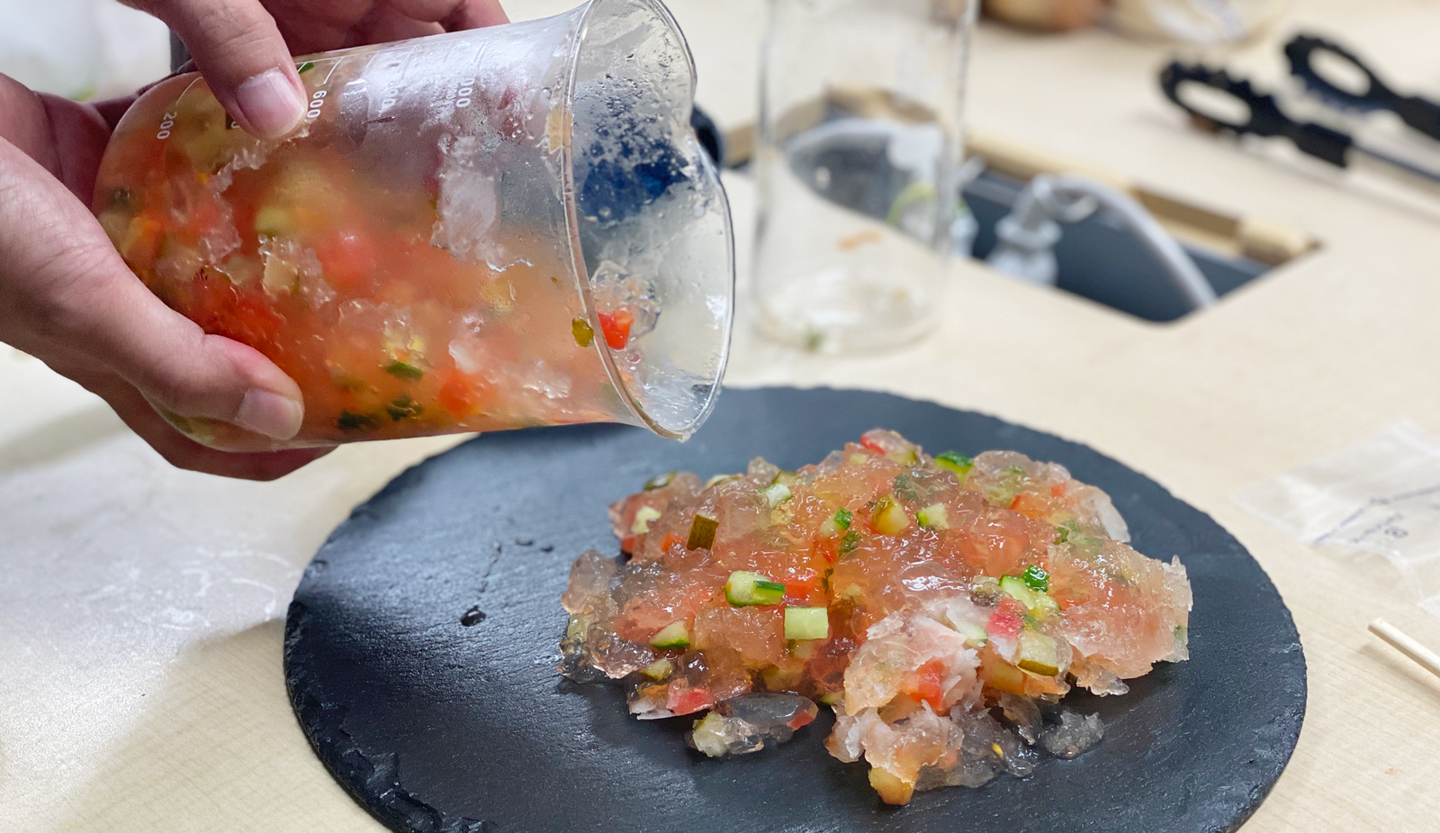 ビーカーから「スペースソルト・ゼリーピクルス」を取り出す瞬間は緊張が走ります。