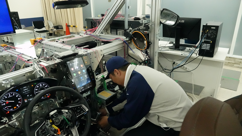 「車種ごとに電子ベンチを作っていくので、ハードの配線をつなげるエンジニア、電子制御を行うエンジニアなどが必要になります。最大10名のメンバーでプロジェクトを進めてもらいました」