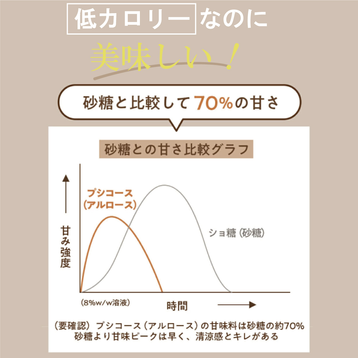 天然素材アルロースとおなかに優しいイソマルトオリゴ糖を使用して作られています。