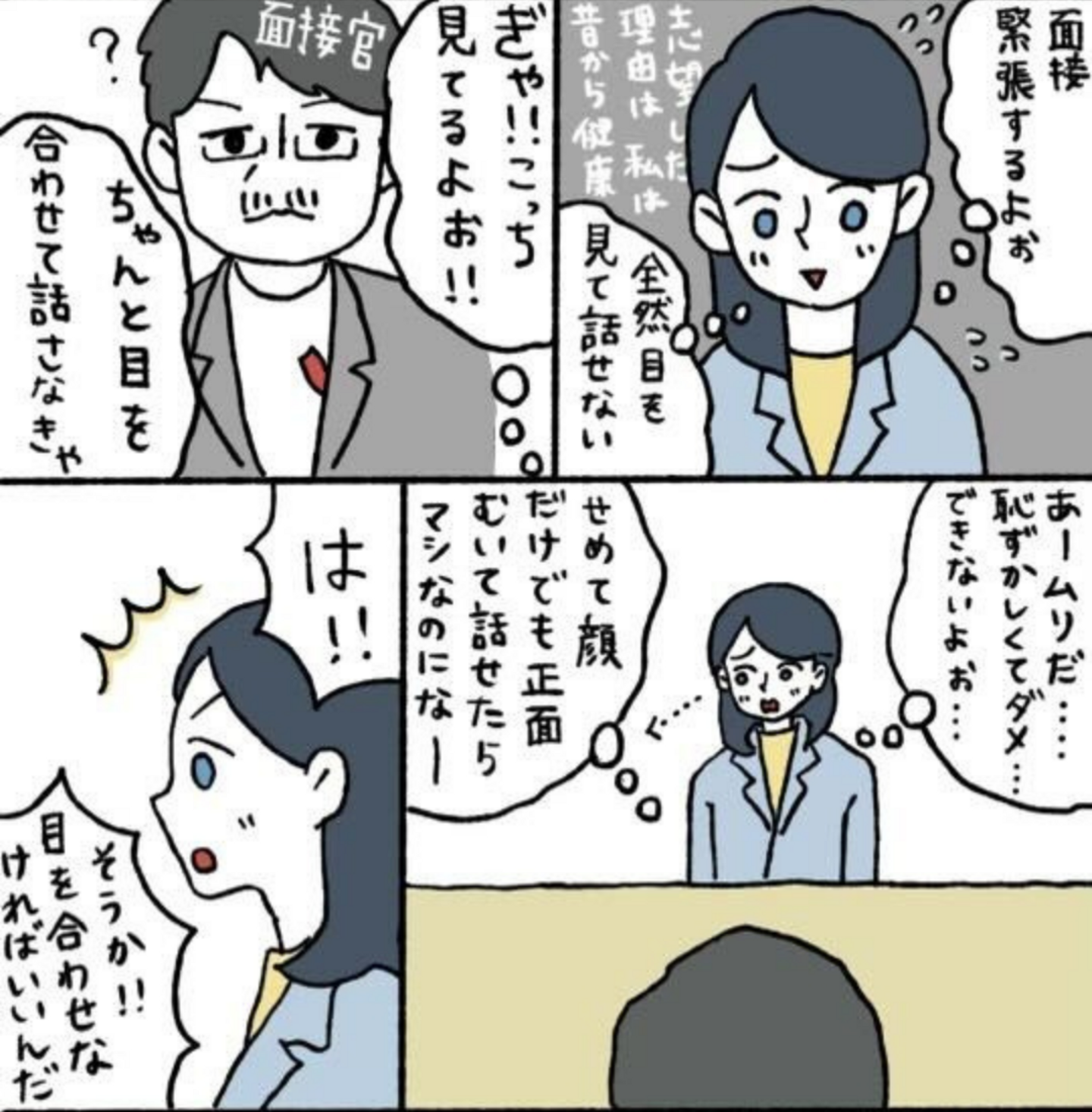 私も、人と目を合わせて話すことが苦手なので、気持ちは痛いほどわかります・・。