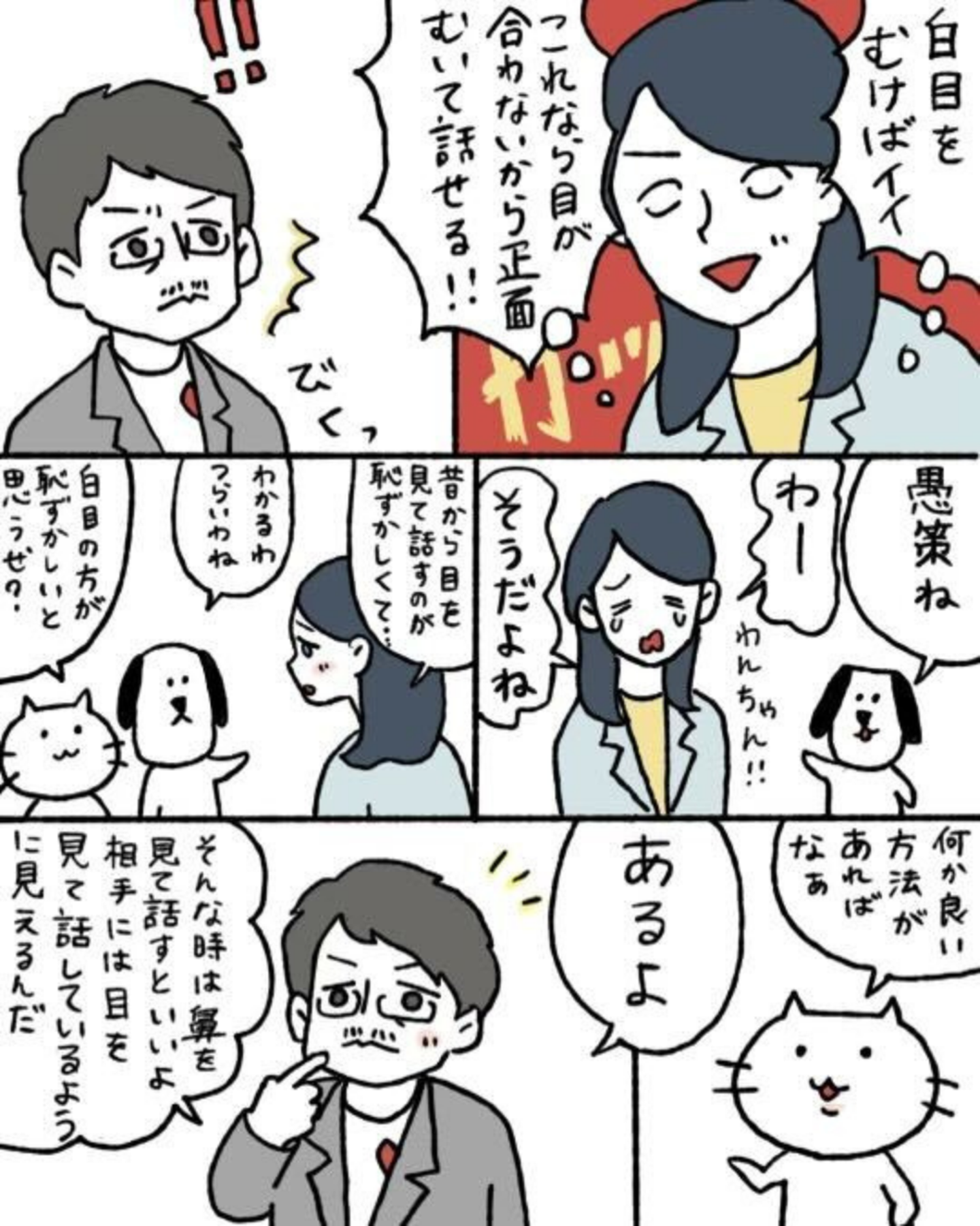 - 目を直視するのが苦手な人は『鼻』を見よう